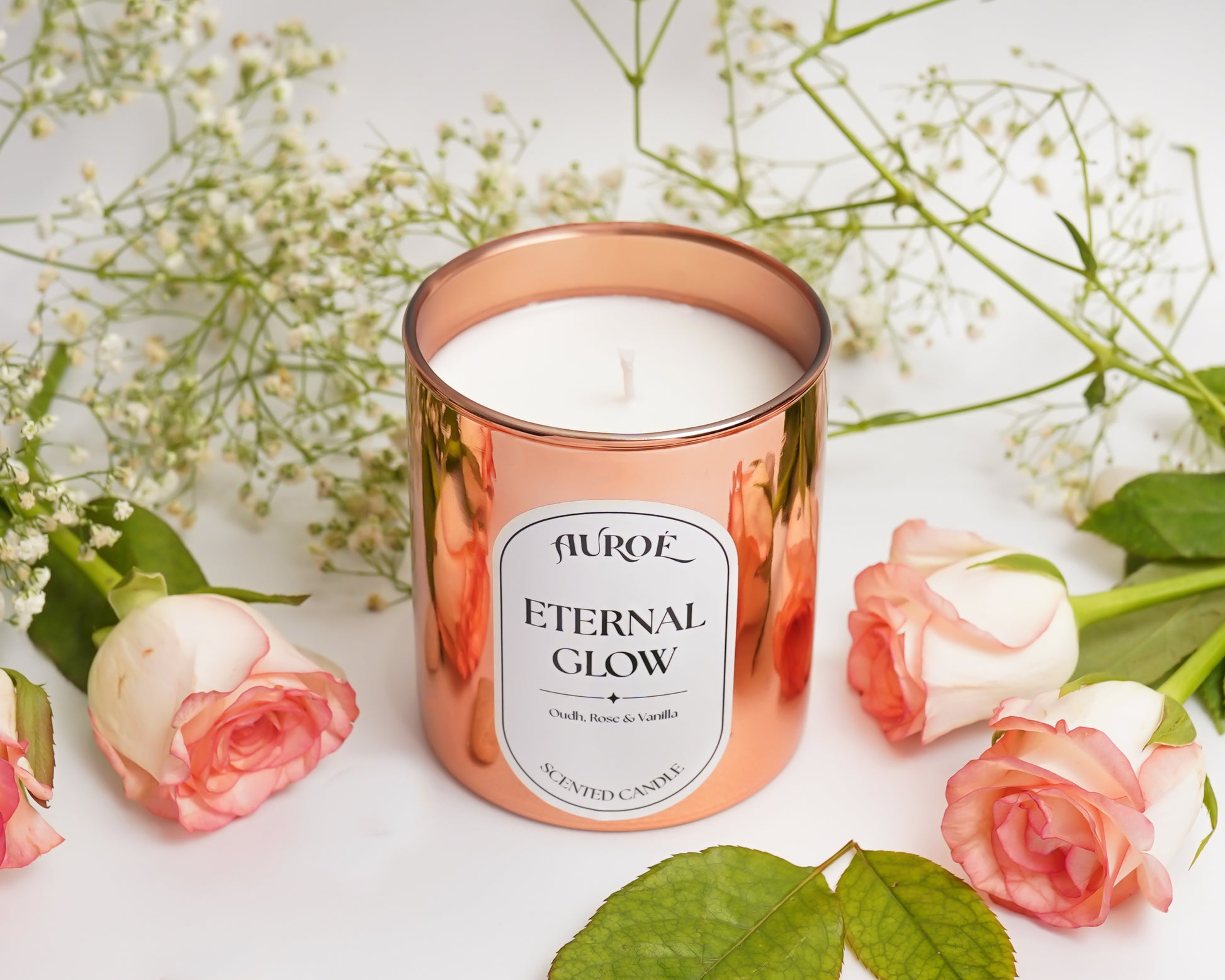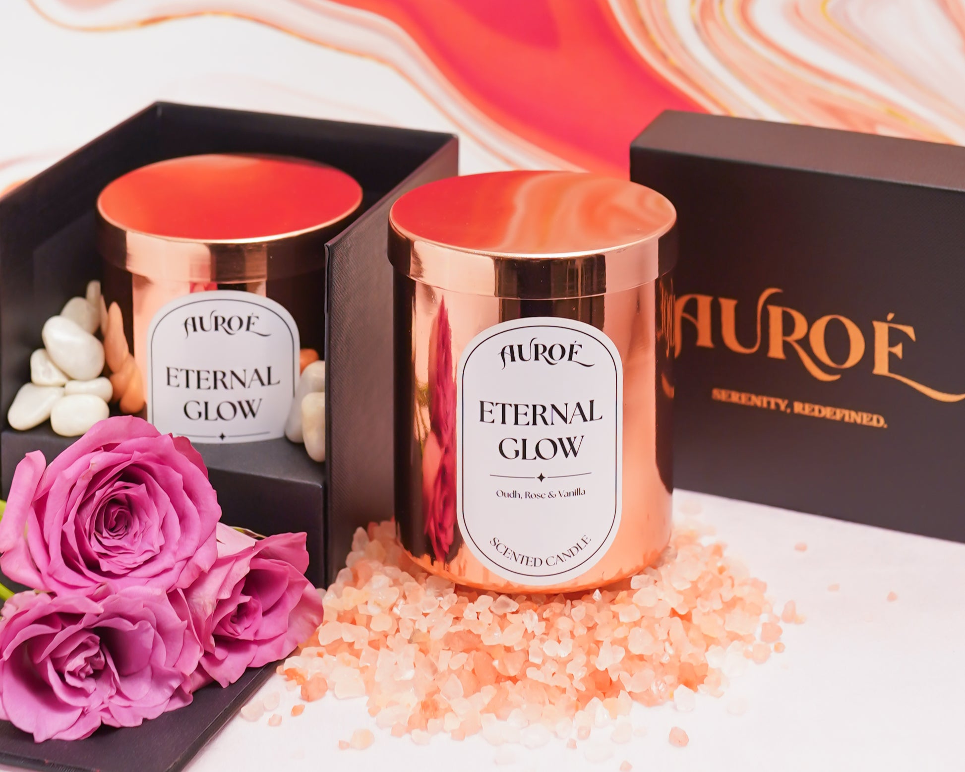 Step into timeless elegance with the regal blend of Oudh, Rose, and Creamy Vanilla. Eternal Glow wraps your space in warmth, luxury, and romantic charm — perfect for dates, weddings, thoughtful gifting, or moments when only the most exquisite atmosphere will do.